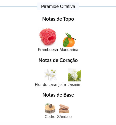 As notas de topo são: Framboesa e Mandarina.