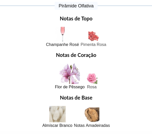 As notas de topo são: Champanhe Rosé e Pimenta Rosa.