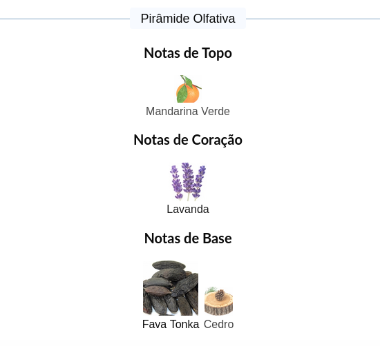 As notas de fundo são: Fava Tonka e Cedro.