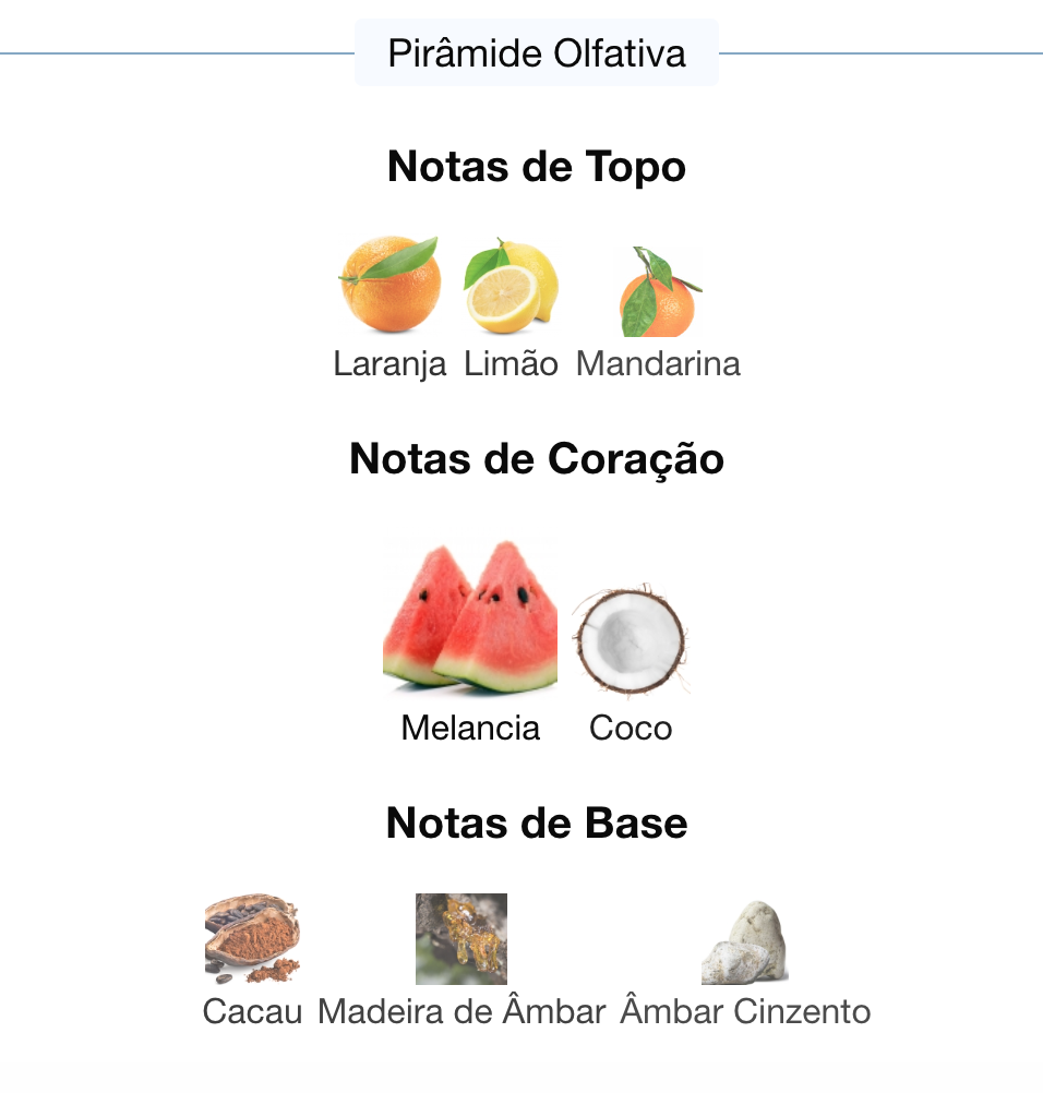 As notas de topo são: Laranja, Limão e Mandarina.