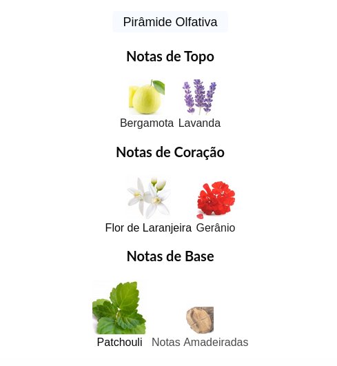 As notas de topo são: Lavanda e Bergamota.