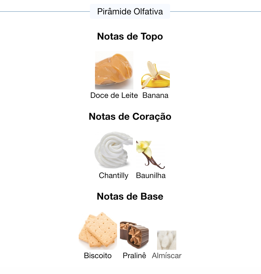 As notas de fundo são: Biscoito, Pralinê e Almíscar.
