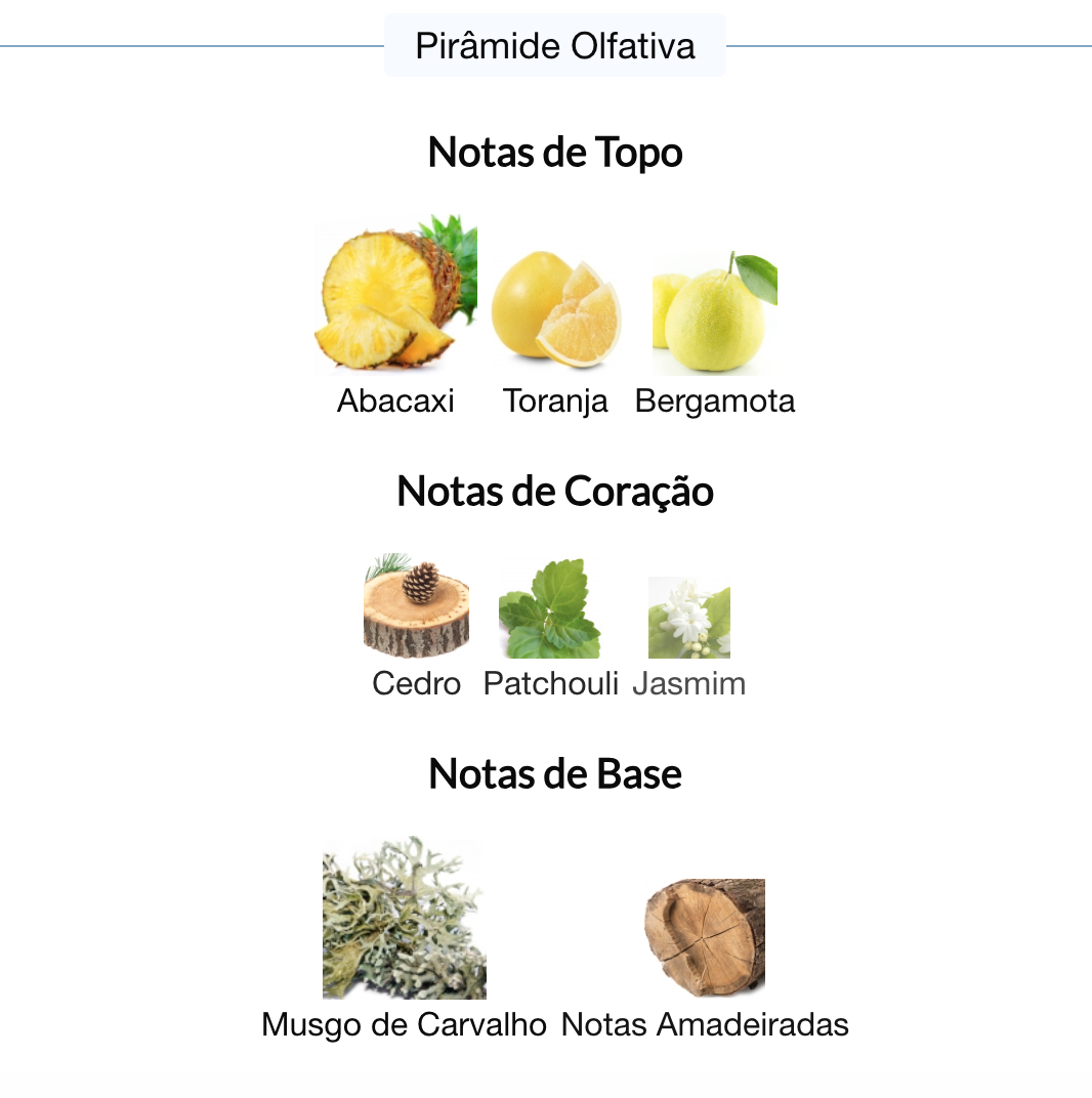 As notas de topo são: Abacaxi, Toranja e Bergamota.