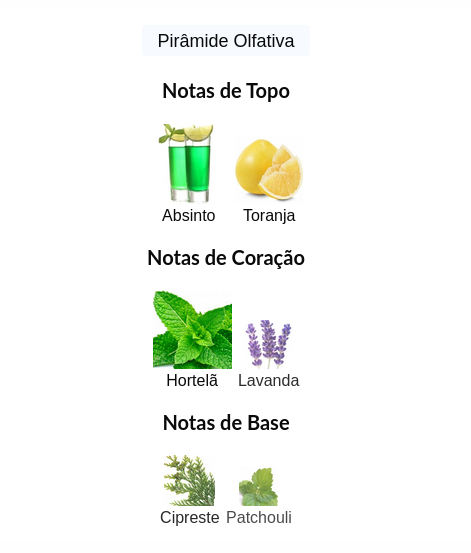 As notas de topo são: Absinto e Toranja.