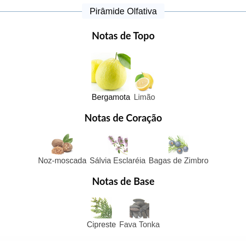 As notas de coração são: Noz-moscada, Sálvia Esclaréia e Bagas de Zimbro.