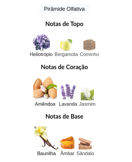 As notas de coração são: Amêndoa, Lavanda e Jasmim.