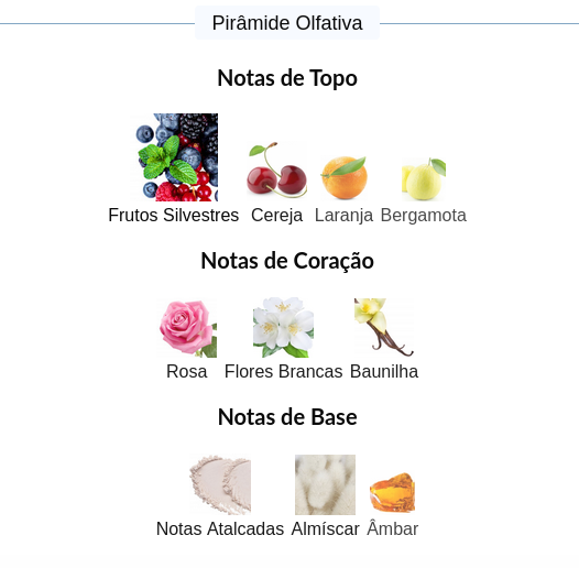As notas de topo são: Frutos Silvestres, Cereja, Laranja e Bergamota.